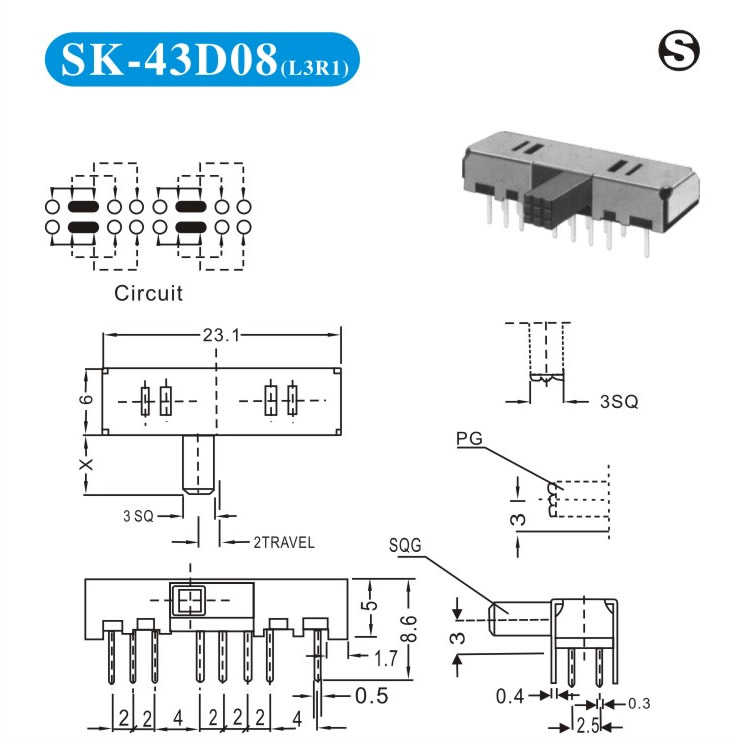 SK-43D08 詳細資料 產(chǎn)品說明: 技術(shù)指標: 使用溫度范圍 -20~+70℃ 耐壓 AC250V(50Hz)/min 額定負荷 DC 50V 0.5A 動作力 250±100gf 接觸電阻 ≤0.05Ω 機械壽命 10000次 絕緣電阻 ≥100MΩ