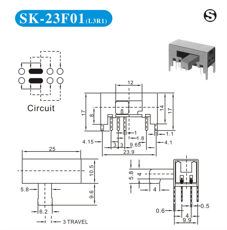 SK-23F01 詳細資料 產(chǎn)品說明: 技術指標: 使用溫度范圍 -20~+70℃ 耐壓 AC250V(50Hz)/min 額定負荷 DC 50V 0.5A 動作力 250±100gf 接觸電阻 ≤0.05Ω 機械壽命 10000次 絕緣電阻 ≥100MΩ
