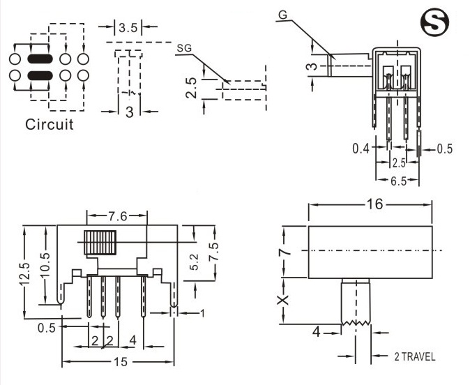 SK-23D05 詳細資料 產(chǎn)品說明: 技術指標: 使用溫度范圍 -20~+70℃ 耐壓 AC250V(50Hz)/min 額定負荷 DC 50V 0.5A 動作力 250±100gf 接觸電阻 ≤0.05Ω 機械壽命 10000次 絕緣電阻 ≥100MΩ