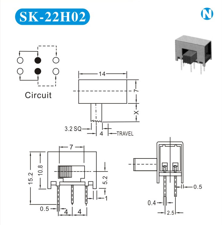 額定負荷 DC 50V  0.5A 動作力 250±100gf