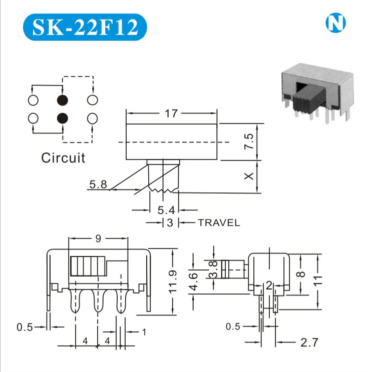 額定負荷 DC 50V  0.5A 動作力 250±100gf