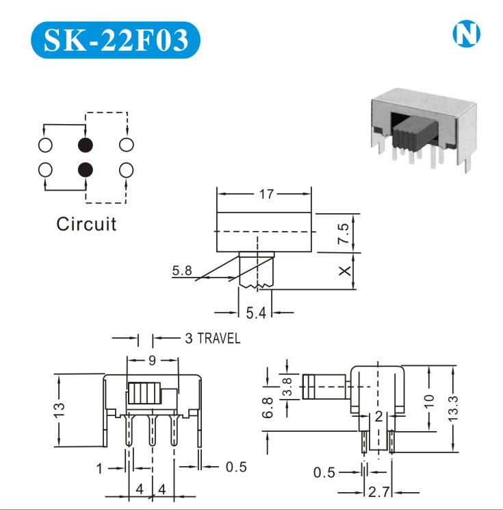 額定負荷 DC 50V  0.5A 動作力 250±100gf