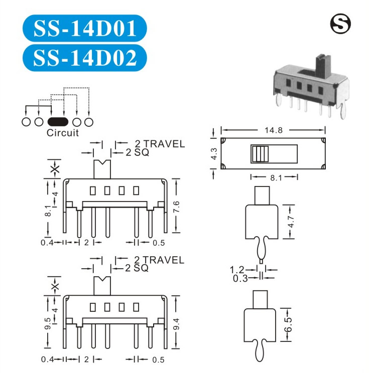SS-14D01 詳細(xì)資料 產(chǎn)品說(shuō)明: 技術(shù)指標(biāo): 使用溫度范圍 -20~+70℃ 耐壓 AC250V(50Hz)/min 額定負(fù)荷 DC 50V 0.5A 動(dòng)作力 250±100gf 接觸電阻 ≤0.05Ω 機(jī)械壽命 10000次 絕緣電阻 ≥100MΩ