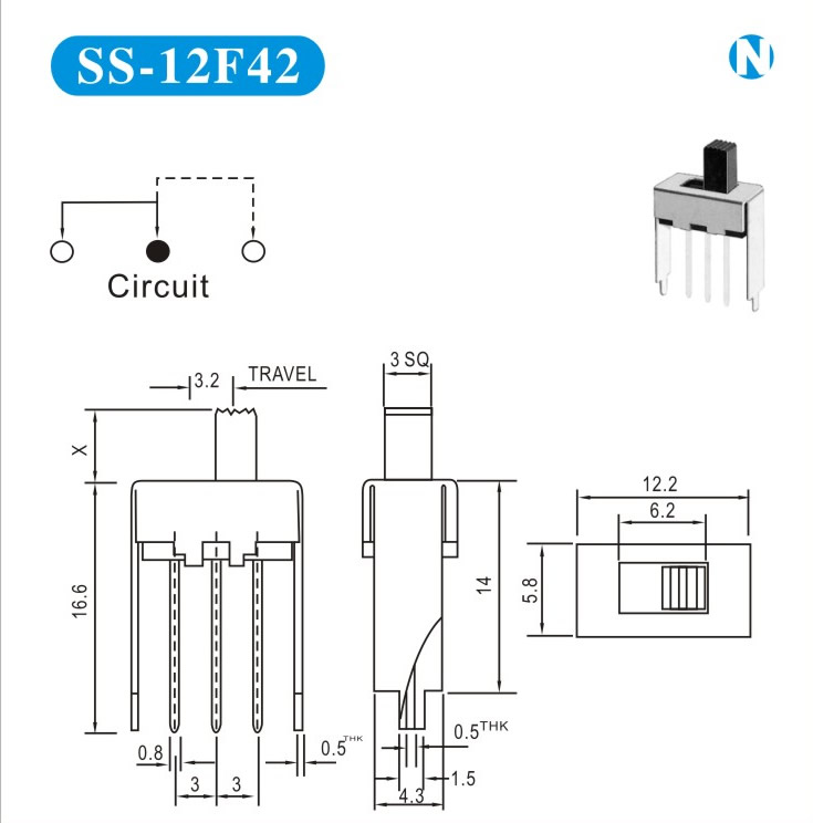 SS-12F42 詳細(xì)資料 產(chǎn)品說(shuō)明: 技術(shù)指標(biāo): 使用溫度范圍 -20~+70℃ 耐壓 AC250V(50Hz)/min 額定負(fù)荷 DC 50V 0.5A 動(dòng)作力 250±100gf 接觸電阻 ≤0.05Ω 機(jī)械壽命 10000次 絕緣電阻 ≥100MΩ