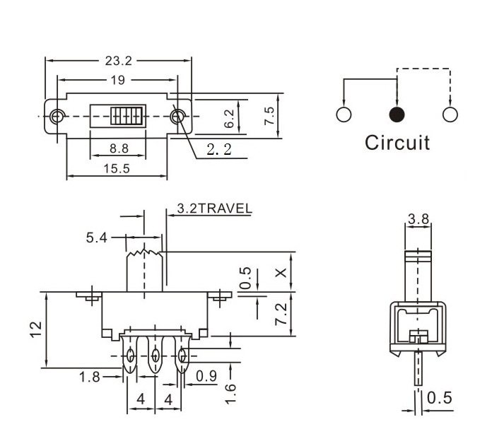 SS-12F32 詳細資料 產品說明: 技術指標: 使用溫度范圍 -20~+70℃ 耐壓 AC250V(50Hz)/min 額定負荷 DC 50V 0.5A 動作力 250±100gf 接觸電阻 ≤0.05Ω 機械壽命 10000次 絕緣電阻 ≥100MΩ