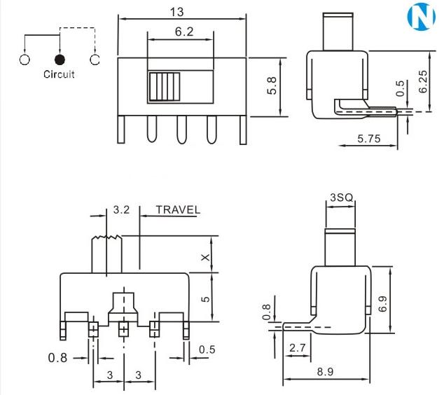 SS-12F23 詳細資料 產(chǎn)品說明: 技術(shù)指標: 使用溫度范圍 -20~+70℃ 耐壓 AC250V(50Hz)/min 額定負荷 DC 50V 0.5A 動作力 250±100gf 接觸電阻 ≤0.05Ω 機械壽命 10000次 絕緣電阻 ≥100MΩ
