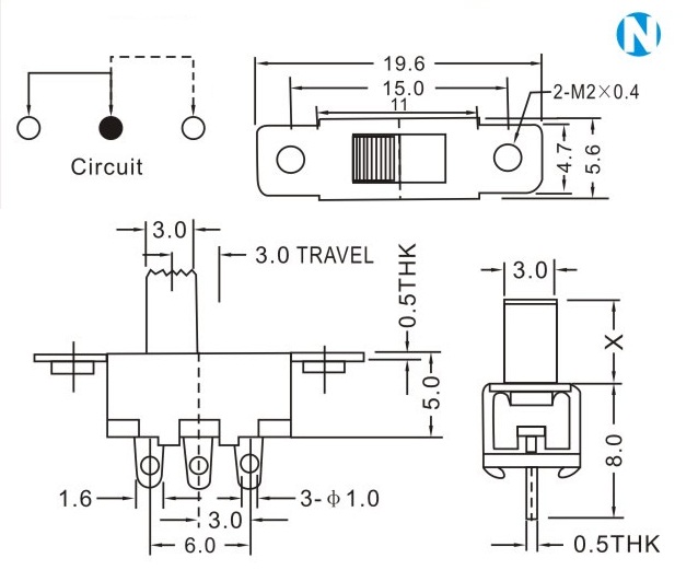 額定負荷 DC 50V  0.5A 動作力 250±100gf