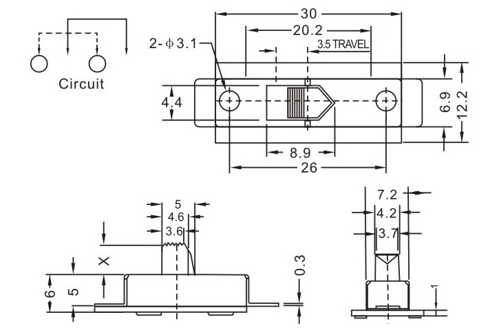 額定負荷 DC 50V  0.5A 動作力 250±100gf