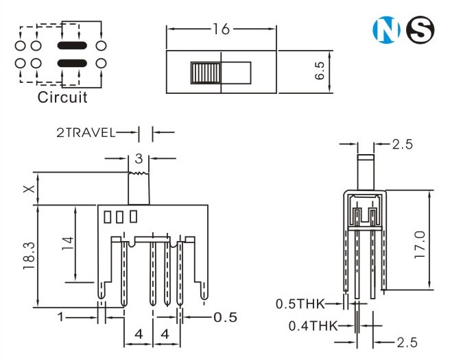 SS-23D14 詳細(xì)資料 產(chǎn)品說明: 技術(shù)指標(biāo): 使用溫度范圍 -20~+70℃ 耐壓 AC250V(50Hz)/min 額定負(fù)荷 DC 50V 0.5A 動(dòng)作力 250±100gf 接觸電阻 ≤0.05Ω 機(jī)械壽命 10000次 絕緣電阻 ≥100MΩ