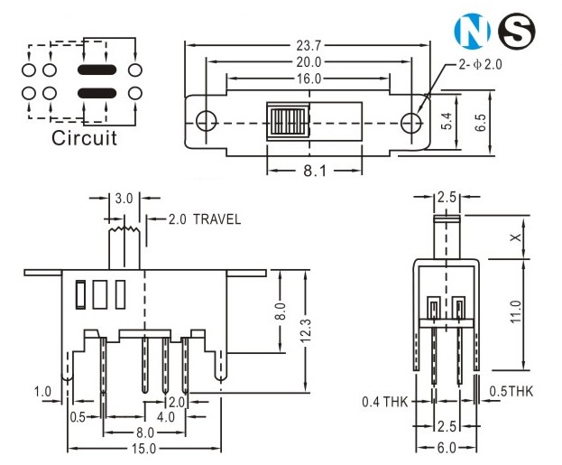 SS-23D04 詳細資料 產(chǎn)品說明: 技術(shù)指標: 使用溫度范圍 -20~+70℃ 耐壓 AC250V(50Hz)/min 額定負荷 DC 50V 0.5A 動作力 250±100gf 接觸電阻 ≤0.05Ω 機械壽命 10000次 絕緣電阻 ≥100MΩ