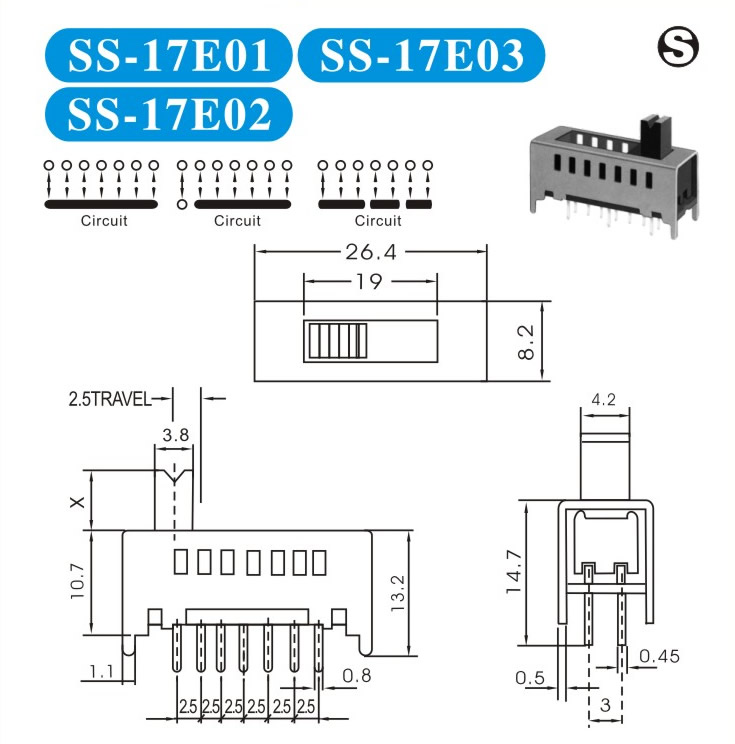 SS-17E01 詳細(xì)資料 產(chǎn)品說明: 技術(shù)指標(biāo): 使用溫度范圍 -20~+70℃ 耐壓 AC250V(50Hz)/min 額定負(fù)荷 DC 50V 0.5A 動(dòng)作力 250±100gf 接觸電阻 ≤0.05Ω 機(jī)械壽命 10000次 絕緣電阻 ≥100MΩ