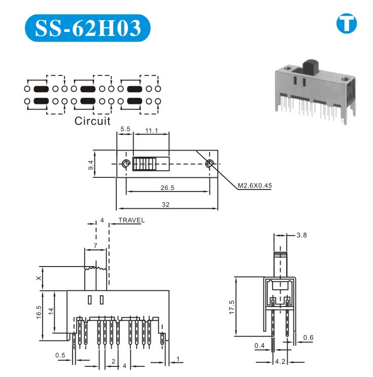 SS-62H03 詳細(xì)資料 產(chǎn)品說明: 技術(shù)指標(biāo): 使用溫度范圍 -20~+70℃ 耐壓 AC250V(50Hz)/min 額定負(fù)荷 DC 50V 0.5A 動(dòng)作力 250±100gf 接觸電阻 ≤0.05Ω 機(jī)械壽命 10000次 絕緣電阻 ≥100MΩ