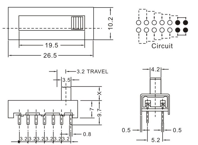 SS-26F01 詳細(xì)資料 產(chǎn)品說明: 技術(shù)指標(biāo): 使用溫度范圍 -20~+70℃ 耐壓 AC250V(50Hz)/min 額定負(fù)荷 DC 50V 0.5A 動作力 250±100gf 接觸電阻 ≤0.05Ω 機(jī)械壽命 10000次 絕緣電阻 ≥100MΩ