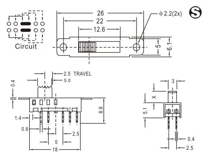 額定負(fù)荷 DC 50V  0.5A 動(dòng)作力 250±100gf