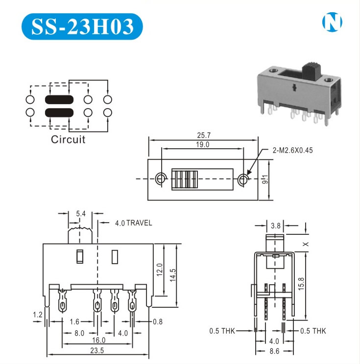 SS-23H03 詳細資料 產(chǎn)品說明: 技術指標: 使用溫度范圍 -20~+70℃ 耐壓 AC250V(50Hz)/min 額定負荷 DC 50V 0.5A 動作力 250±100gf 接觸電阻 ≤0.05Ω 機械壽命 10000次 絕緣電阻 ≥100MΩ