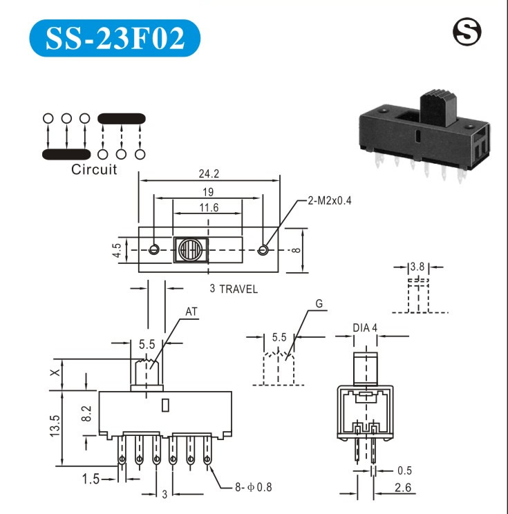 SS-23F02 詳細(xì)資料 產(chǎn)品說明: 技術(shù)指標(biāo): 使用溫度范圍 -20~+70℃ 耐壓 AC250V(50Hz)/min 額定負(fù)荷 DC 50V 0.5A 動(dòng)作力 250±100gf 接觸電阻 ≤0.05Ω 機(jī)械壽命 10000次 絕緣電阻 ≥100MΩ
